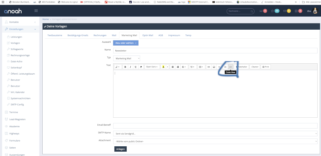 Beende den Code-View indem du auf den “Code-View” Button klickst.